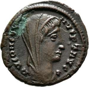 Obverse: DV CONSTA[NTI]-NVS PT AUGG. Büste des Constantinus I. nach r., mit Schleier.