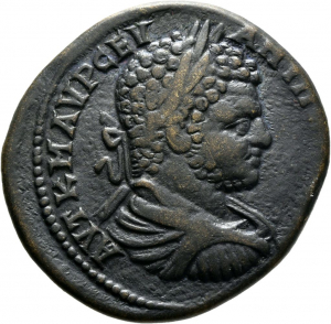 Vorderseite: ΑVΤ Κ Μ ΑVΡ CΕV - ΑΝΤ[ΩΝΕΙNΟC]. Büste des Caracalla nach r., mit Lorbeerkranz und Feldherrenmantel.