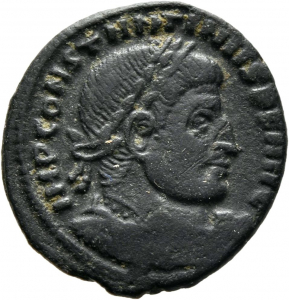 Obverse: IMP CONSTANTINVS P F AVG. Büste des Constantinus I. nach r., mit Lorbeerkranz, Brustpanzer und Feldherrenmantel.